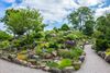 Fra terrassen foran har du udkig over hele haven: bassinet med åkander, stenhøjene med alpine planter, rododendronhaven og søen bagved. Hvis du trænger til lidt at drikke, finder du også en kaffevogn her under åben himmel, når vejret er til det.