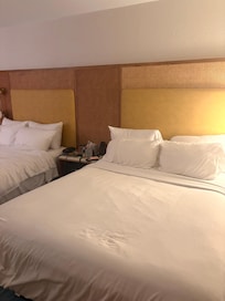 The room was okay( an old hotel but updated); furnitures were updated but we were disappointed to find out that there was no microwave or cookware/ oven /utensils in the room as detailed online per our room Choice. Had kids and had to go all the way to the busy reception( a different tower) to get their food heated each time. The hallways were dirty and smell badly of “weed”. Reception didn’t answer calls too. Also instead of checking in at 4pm, we checked in around 7pm because room was not ready.