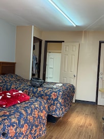 Rooms were clean, ac worked great, and tv worked great in one room but an older remote in the other wasn't fully functional but did work. I found the beds to be quite comfortable. The room doors had been repainted outside but the temporary numbers marked on tape weren't easily readable in the dark and the door seals need replacing as the adjacent highway noise was unusually loud. There wasn't any place for some long-term residents to keep their outside equipment (BBQ, Chairs, etc) except on the sidewalk but not a problem except there wasn't a wheelchair ramp near our end of the building. The office area needs a major update and the one-time attractive sign out front is missing some of the lights. I would stay here again but would not if my family was traveling with me.
