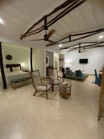 All’arrivo ti ritrovi subito immerso nella natura e vieni ricevuto da persone di una gentilezza e dolcezza estrema. Nonostante un disguido di prenotazione con il nostro tour operator, Mohammed risolve in modo estremamente professionale la situazione, preoccupandosi per il nostro benessere e di non farci sentire a disagio. Noi abbiamo soggiornato in una delle splendide ville nella giungla: design molto raffinato e ottima pulizia/ordine. É capitato spesso, mentre ci rilassavamo nella nostra piscina privata, di avere la compagnia di scimmiette meravigliose (siamo in Africa e siamo estremamente grate di averle avute intorno a noi). La spiaggia e il mare sono stati una sorpresa continua: abbiamo avuto l’esperienza di vivere le varie fasi della luna e di conseguenza della marea. Il mare non ha nulla da invidiare ad altre zone di Zanzibar e la sabbia é semplicemente bianchissima. Riconfermo, un paradiso! Un’altra nota piú che positiva é stata la cucina: un menù a la carte con piatti curati sia nell’estetica che nel gusto. Asante sana a Beatrice, a Mohammed, a tutto lo staff del resort e ai Masai Thomas e Matteo che ci hanno fatto vivere un’esperienza indimenticabile.